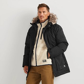 Get ready to conquer the freezing cold with the Men's Boundary Pass Down Parka. The durable polyester shell, filled with Premium Down insulation, is guaranteed to keep you cozy even in subzero temperatures. Plus, the adjustable, insulated hood with a removable faux fur ruff adds a stylish touch to your winter wardrobe.