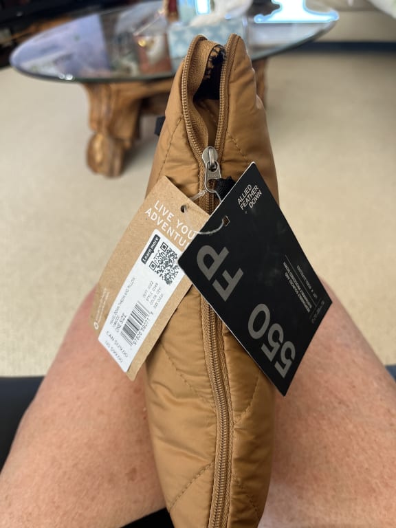 Just toss this packable down throw into your bag, backpack or car for cozy warmth on the go. It also zips it into a comfy pillow for the plane, camping, or anywhere you want to take a quick snooze. A fabric loop and snap allow you to attach it securely to your backpack or luggage handle.
