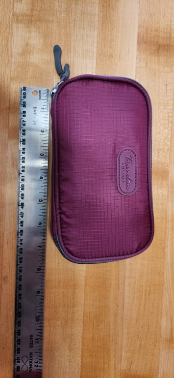 This just right size organizer can be used to safely store tec accessories to jewelry keys meds. Well made with many compartments and a secure closures A must have for purse, backpack and carryon.