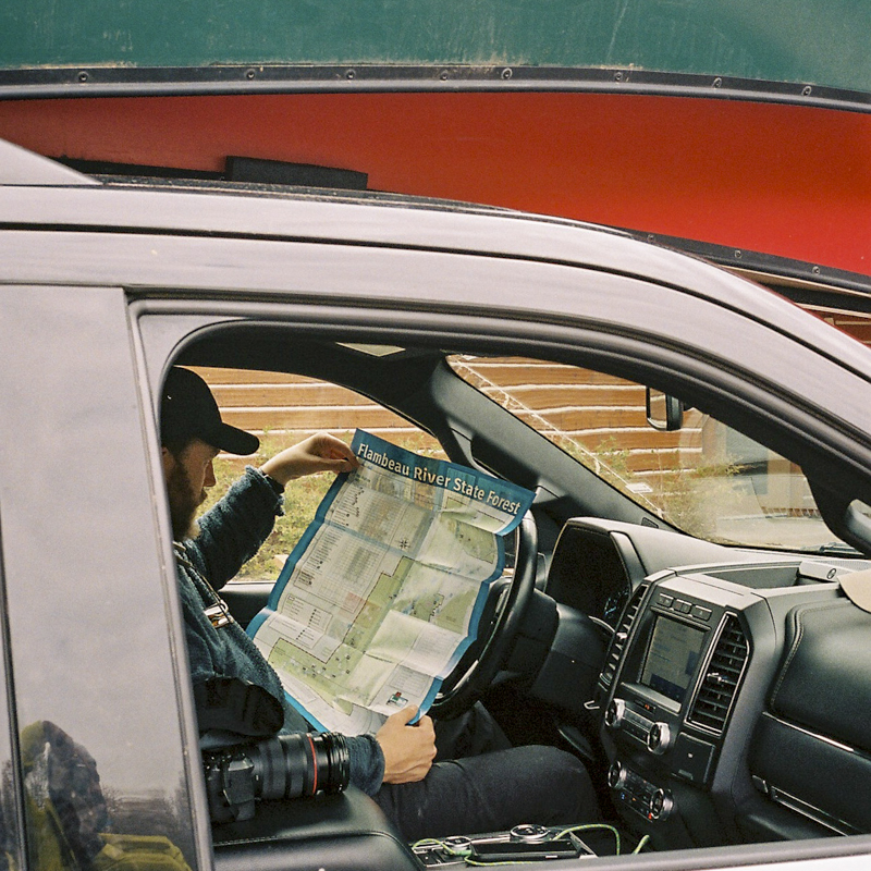 We pulled out from the visitor center for a 20-30 minute drive to our final stop, the put-in on the North Fork of the Flambeau. I took these final moments to load a roll of Kodak Gold 200 into my Mamiya 6. I had already been snapping shots on a roll of Portra 400 loaded in my Contaxt T, as well as a roll of Illford XP2 in my Pentax Spotomatic. Something that I forgot, but that is also a must for any kind of travel, is downloading an offline map of the area on Google Maps. Not only is it great for navigation, but there’s the added benefit of being able to geographically pin your favorite places and take notes.